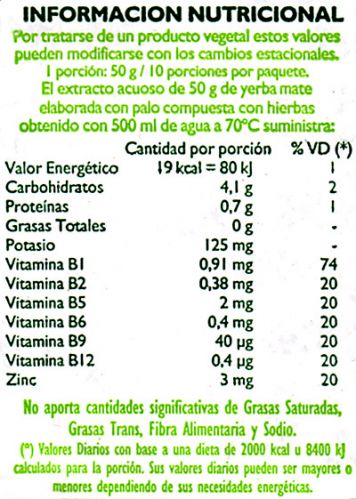 Yerba Mate CBSe Silueta to prawdziwa bomba witaminowa, o czym informuje producent na opakowaniu:
