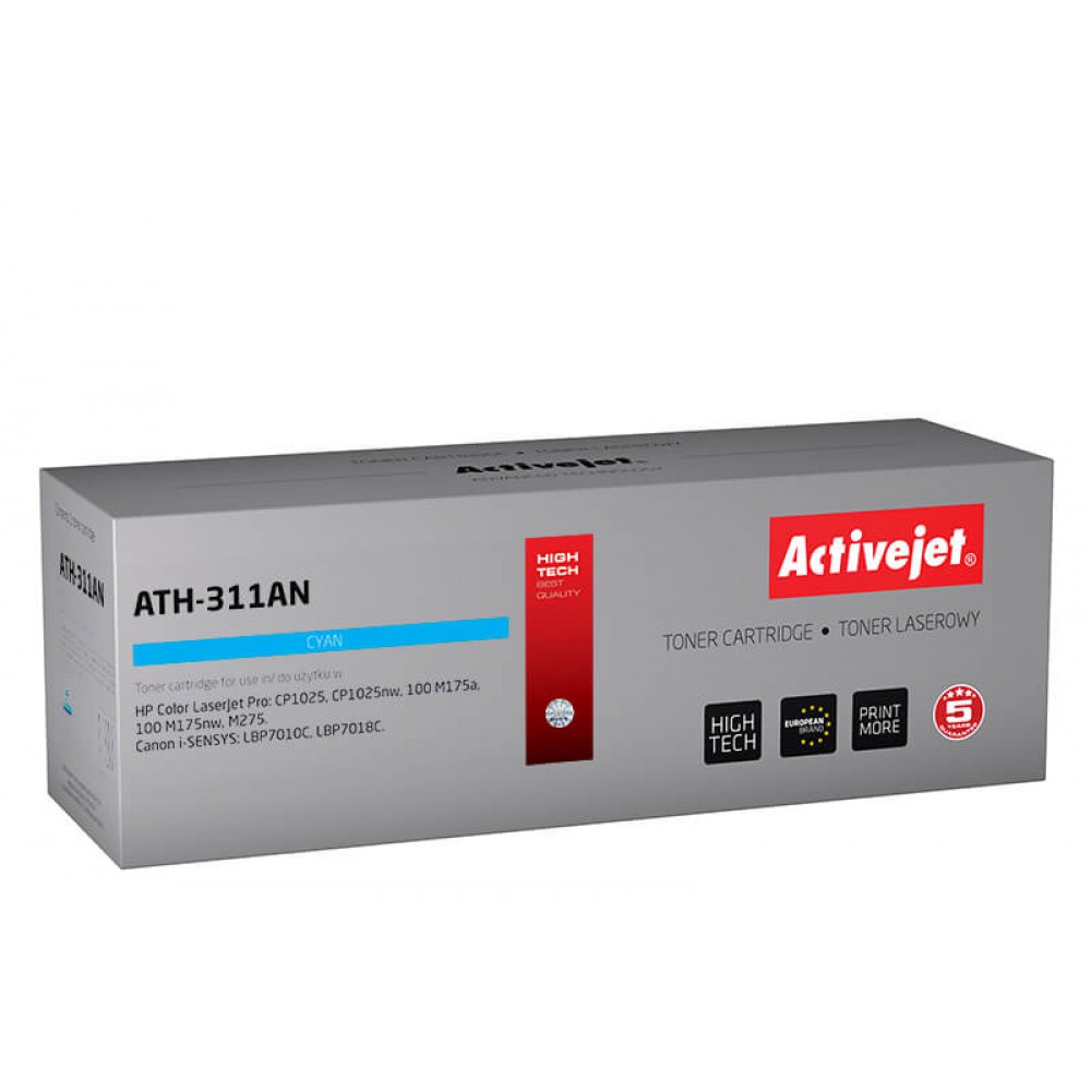 Toner Activejet ATH-311AN to najwyższej jakości tani zamiennik kartridża CE311A do drukarki HP HP Color LaserJet Pro CP1025, CP1025nw, 100 M175a, 100 M175nw, M275. Canon i-SENSYS LBP7010C, LBP7018C (wydajność: 1000 stron A4 przy 5% pokryciu strony).