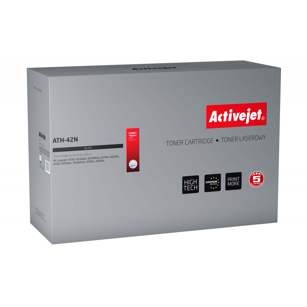 Toner Activejet ATH-42N to najwyższej jakości tani zamiennik kartridża Q5942A do drukarki Hawlett-Packard (wydajność: 10000 stron A4 przy 5% pokryciu strony.).